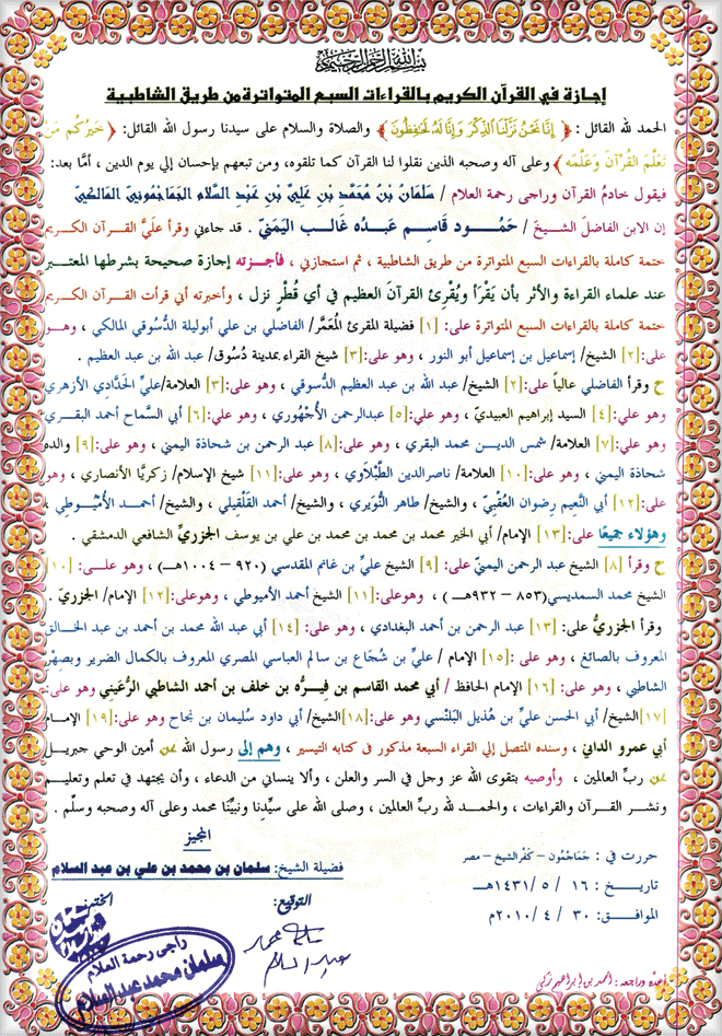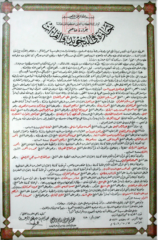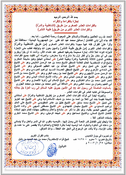 ·    إجازة بالقراءات العشر الكبرى
