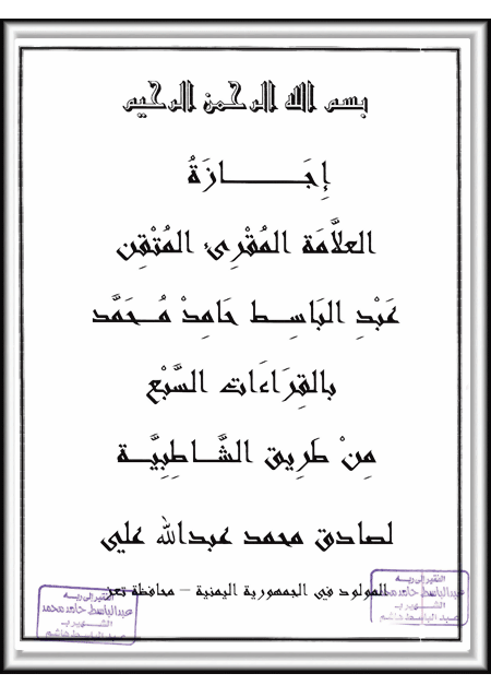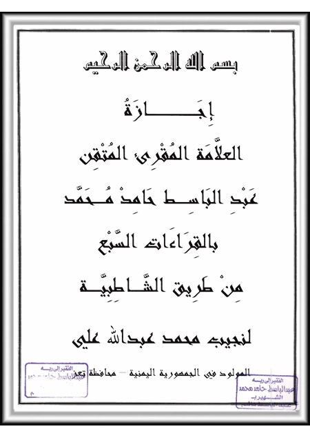 ·        إجازة بالقراءات السبع من طريق الشاطبـيــــــــة