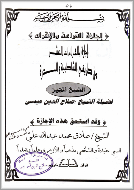 ·        إجازة بالقراءات العشر الكبرى